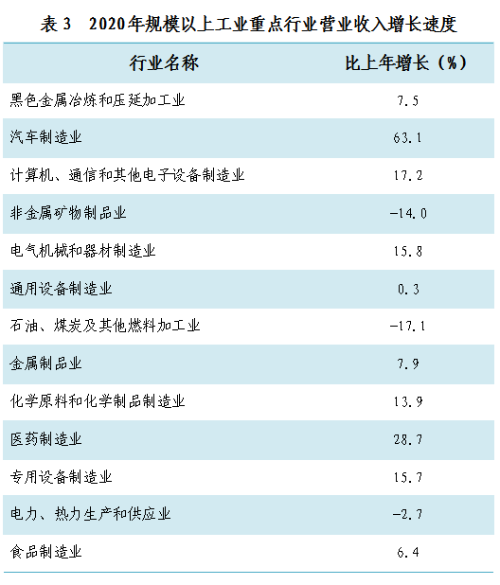 四、工业和建筑业 全年全部工业增加值2360.5亿元,比上年增长8.2%。规模以上工业增加值增长12.2%,分经济类型看,公有制经济增长9.5%,非公有制经济增长14.1%;分轻重工业看,轻工业增长12.3%,重工业增长12.2%。全市规模以上工业六大重点行业中,汽车制造业增长77.9%,医药制造业增长31.3%,计算机通信制造业增长20.3%,黑色金属压延加工业增长8%,石油煤炭加工业、非金属矿物制品业分别下降9.9%、11.1%。
