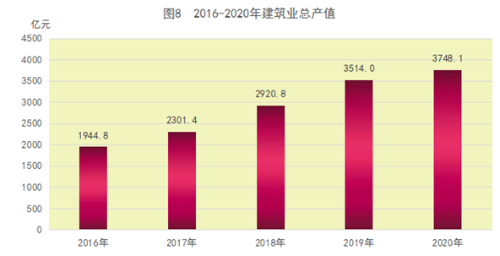 全年规模以上工业企业完成营业收入7387.8亿元,比上年增长14.3%,利润总额407.3亿元,增长40.6%,营业收入利润率为5.5%。41个大类行业中,营业收入超百亿的行业达到15个,总量占比92.7%。其中,黑色金属冶炼和压延加工业、汽车制造业超过千亿规模。 全年规模以上工业产品产销率为98.7%。所生产的174种大类产品中,有94种产品产量实现增长,增长面为54.0%。其中,增幅超过30%的产品有37种,占比为21.3%,比上年提高7.5个百分点。生产载货汽车39.4万辆,增长92.7%,汽车用发动机、汽车仪器仪表分别增长74.7%、55.4%。光缆、工业机器人、高温合金分别增长50.1%、24.6% 、13.4%。 全年建筑业增加值1181.8亿元,比上年增长3.9%,占GDP比重11.7%。房屋施工面积达到17089.9万平方米。主营业务为建筑业、具有总承包和专业承包资质的、有工作量的建筑业企业1033家,比上年增加168家。实现建筑业总产值3748.1亿元,增长6.7%。其中,国有及国有控股企业产值2842.9亿元,增长10.3%。签订合同额9823.0亿元,增长17.0%。其中,本年新签合同额5531.7亿元,增长22.0%。