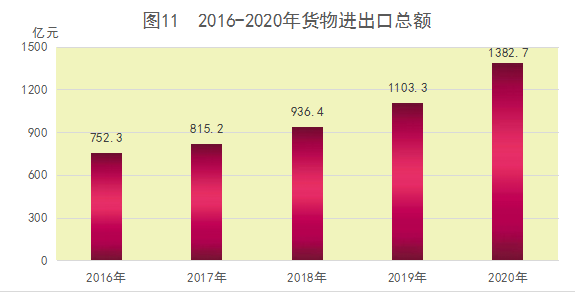 限额以上单位商品零售额中,粮油、食品类156.4亿元,增长7.0%;家用电器和音像器材类85.6亿元,增长6.7%;汽车类477.2亿元,增长7.4%。 七、开放型经济 全年货物进出口总额1382.7亿元,同比增长22.9%。其中,出口755亿元,增长17.2%;进口627.6亿元,增长30.7%。出口市场中,对欧洲国家和地区出口增长34.4%,对韩国、日本出口分别增长19%和12.4%,对美国出口增长19.9%,对“一带一路”沿线国家和地区出口增长15.9%。主要出口商品中,机电产品出口406亿元,增长11%;高新技术产品出口145.3亿元,增长59.3%;农产品出口67.7亿元,增长28.7%,防疫物资出口40.5亿元,增长868.8%。全年经济外向度13.6%,比上年提高1.9个百分点。 全年实际使用外资19.2亿美元,比上年下降14.2%。其中,制造业使用外资1.5亿美元,三产使用外资14.6亿美元。全年实现合同外资额58.5亿美元,下降14.4%。新批外商投资项目203个,总投资过亿美元的项目34个,合同外资39.9亿美元。 全年对外承包工程新签合同额44.0亿美元,比上年下降23.2%;完成营业额42.7亿美元,增长4.5%;备案设立境外企业(机构)77家,实际投资19.1亿美元,增长72.7%。派出各类劳务人员11966人,增长48.7%。