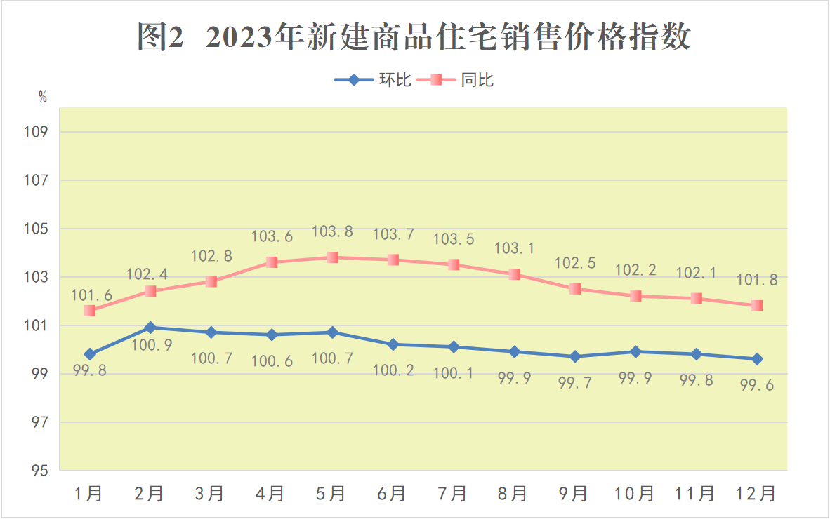 人口规模持续增长。年末常住人口943.7万人,比上年增长0.2%,其中,城镇常住人口710.4万人,占总人口比重(常住人口城镇化率)75.3%,提高1.0个百分点。户籍人口825.3万人,增长0.7%。全年申报出生率7.6‰,申报死亡率5.7‰,人口自然增长率1.8‰。全年人才流入27.5万人,净流入14.6万人。 就业形势总体稳定。市场主体增至154.8万户,比上年增长3.3%。全年新增城镇就业17.8万人,增长2.3%。建强创业孵化基地,全市共有市级创业孵化基地86家,孵化总面积366万平方米,在孵企业1.2万个,发放创业担保贷款7.8亿元,落实各类创业补贴4600万元,累计带动就业10万人以上。成功举办首届“海右人才节”,第六届中国(济南)新动能创新创业大赛引进院士团队12个,全市新增国家级、省级重点人才126人,人才资源总量达到278.2万人,连续两年获评“中国最佳引才城市”。 居民消费价格温和上涨。全年居民消费价格指数(CPI)上涨0.6%,涨幅较上年回落0.8个百分点,保供稳价成效明显。从居民消费的八大类商品及服务项目价格构成看,呈“六涨一落一持平”态势。新建商品住宅销售价格同比保持增长,环比指数前高后低。 表1 2023年居民消费价格比上年涨跌幅度