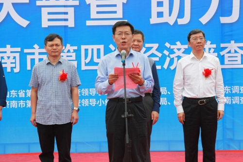 (山东省统计局二级巡视员、省第四次经济普查领导小组办公室常务副主任陆万明同志讲话) (市统计局局长苑子建主持启动仪式) 他指出,经济普查与我们每个人息息相关。省委、省政府高度重视经济普查工作,省委书记刘家义、省长龚正对经济普查工作做出重要指示批示,副省长王书坚同志亲自担任普查领导小组组长,并多次听取经济普查工作汇报,亲自部署全省经济普查工作,为普查工作提供了强有力的支持。全省统计工作者深感责任重大、任务艰巨、使命光荣,因此要认真谋划,精心组织,加倍努力,确保经济普查各项任务如期高质量完成。 (普查员代表宣誓) 随后,普查员代表进行了宣誓,由陈汉臻副局长、胡修府副总队长、辛安团长共同按下启动键,市统计局局长苑子建宣布,山东省暨济南市第四次经济普查单位清查正式启动。 最后,与会领导和现场嘉宾参观了经济普查、改革开放40周年辉煌成就、济南的一天、统计法规等主题展板。活动现场通过设立现场咨询台,发放第四次全国经济普查单位清查告知书、经济普查条例条文节选、统计法律法规宣传单等宣传资料,加深了广大市民对第四次经济普查和统计工作的了解,对提高社会公众的支持和配合起到了积极的推动作用。